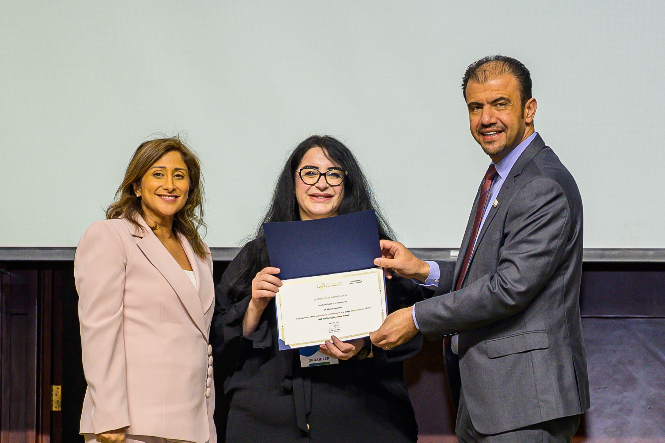 Moreover, three researchers were recognized for their groundbreaking contributions to sustainability and wellbeing. The First Place was awarded to Bayan Alradi and Dr. Samer H. Zyoud from Ajman University for their research titled “Empowering the UAE’s Renewable Energy Future with High-Efficiency CZTS Solar Cells.” The Second Place went to Dr. Mohammed Elseidi from Umm Al Quwain University for his research titled “Constructing and Forecasting a Hybrid Well-Being Index for the UAE: A Data-Driven vs. Equal-Weight Approach.” The Third Place was awarded to Najla Almatrooshi and Nicole Weber from Sorbonne University Abu Dhabi for their research titled “Desert Bloom Economies: Reimagining Gulf Wellbeing through Biomimicry, Non-Anthropocentric Ethics, and Post-Rentier Narratives.”