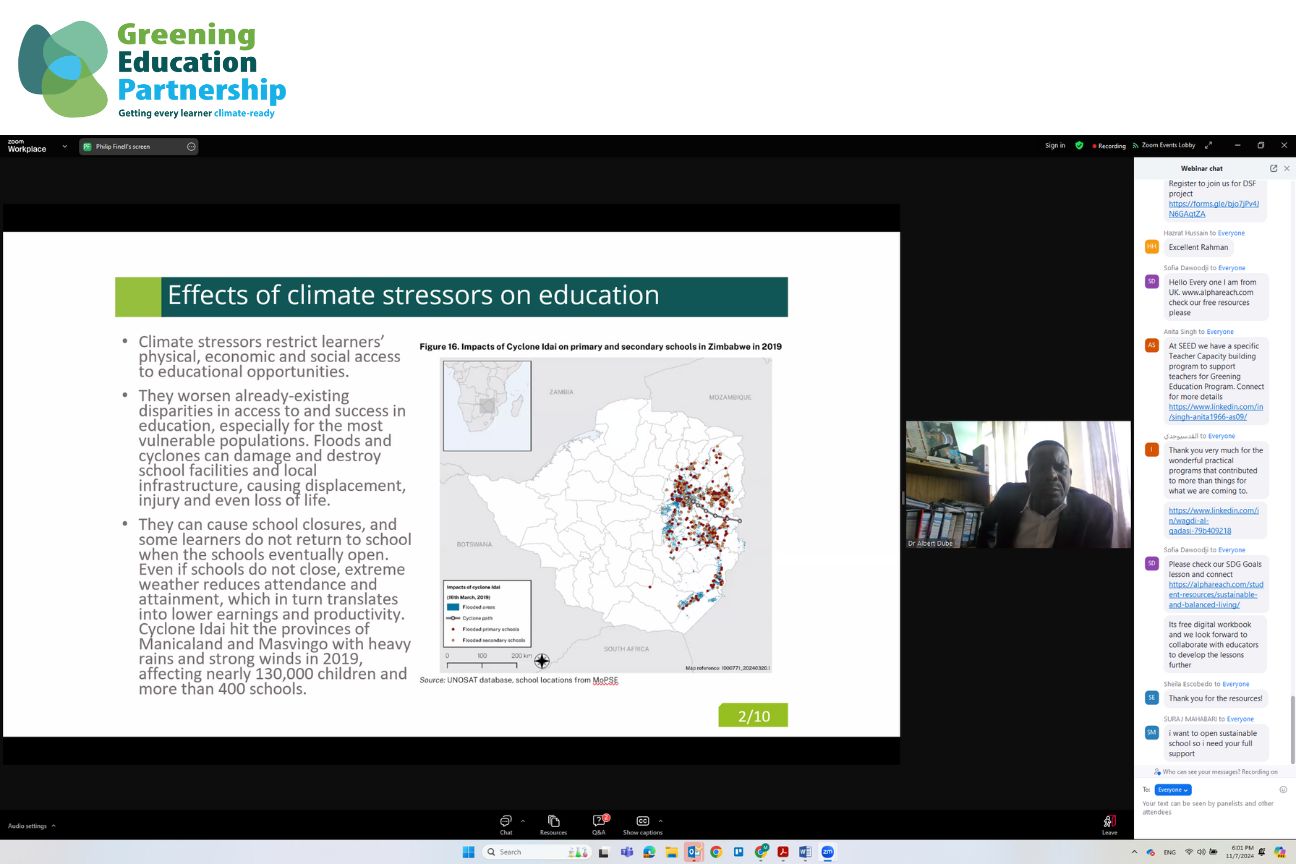The event featured a distinguished panel of speakers from leading global organizations, including representatives from the Ministry of Primary and Secondary Education and the Ministry of Climate Change in Zimbabwe, Save the Children, UNESCO, the UNESCO International Institute for Educational Planning (IIEP), the Global Partnership for Education (GPE), and GEP Nigeria.