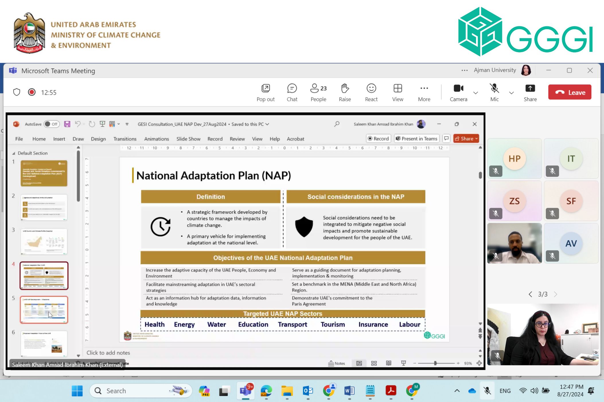Ensuring Inclusive Adaptation: Providing input to guarantee the NAP mitigates negative social impacts and promotes sustainable development for all people in the UAE.