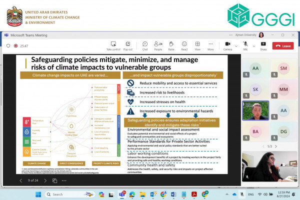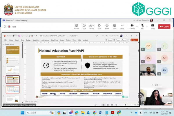 Ajman University has reinforced its role as a key advisor to the nation’s climate agenda through its active participation in the official government consultation sessions for the UAE National Climate Adaptation Plan (NAP). The high-level meeting, led by the national Climate Change Team and GGGI, focused on integrating social equity and robust governance into the core of the country's strategy to build resilience against climate impacts.