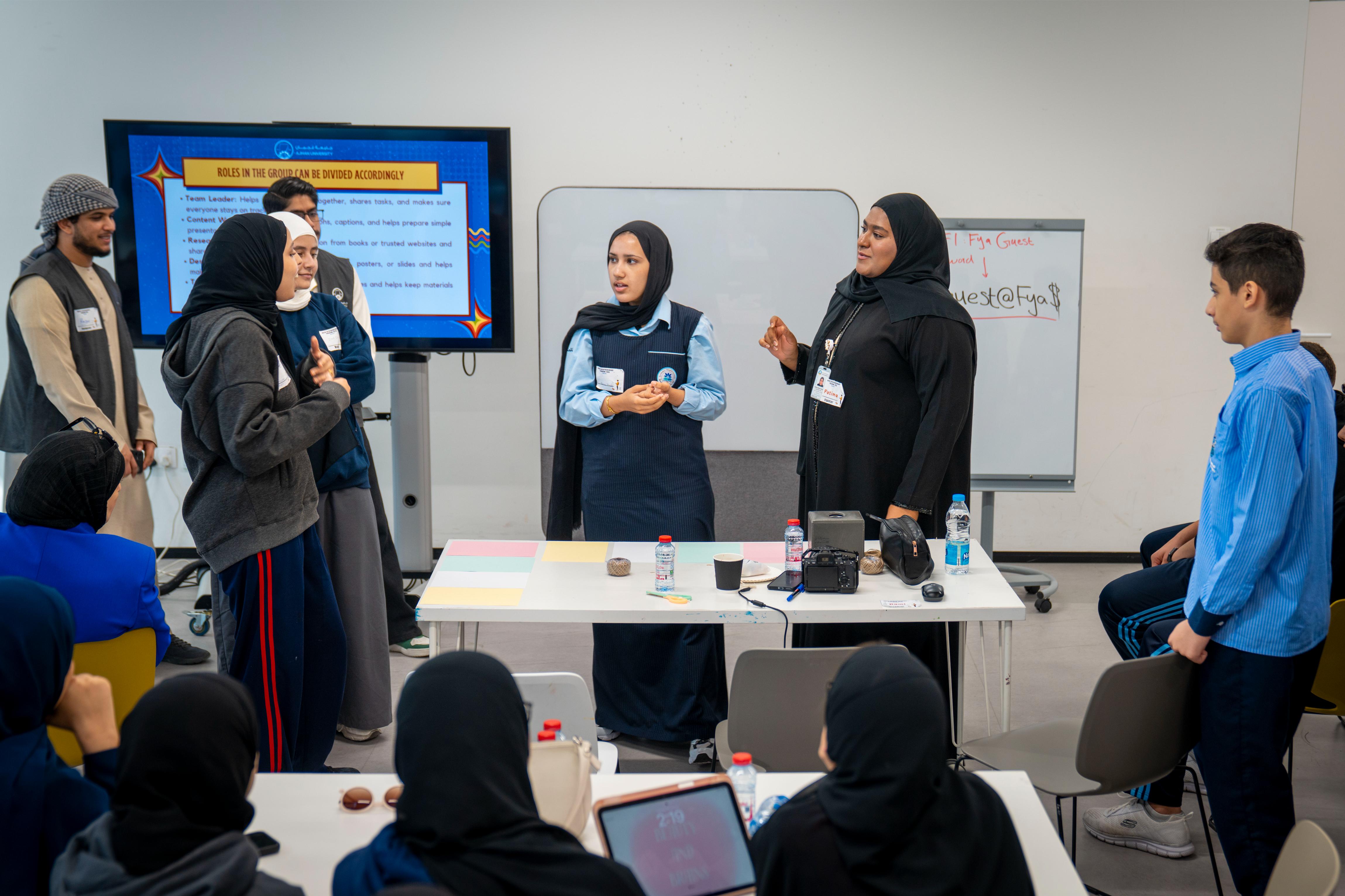 The program focuses on developing innovation and critical thinking skills while reinforcing the concept of sustainability-driven entrepreneurship through hands-on, impact-oriented learning from an early stage. It aligns with Ajman University’s Strategic Plan by supporting community engagement, fostering innovation and entrepreneurship, advancing the Sustainable Development Goals, and promoting environmental, social, and governance (ESG) priorities through effective partnerships with schools.